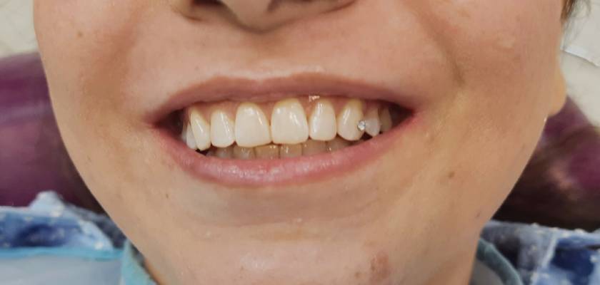 No. When placed professionally at Dentaire Clinic, tooth jewellery does not damage your enamel. The procedure is non-invasive and does not require drilling. It can also be safely removed without harming the tooth surface.